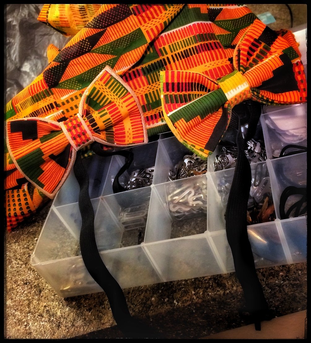 Handcrafted bow tie - cotton kenté cloth fabric fastened with an elastic neck strap for convenience and comfort. Affordable and fashionable!